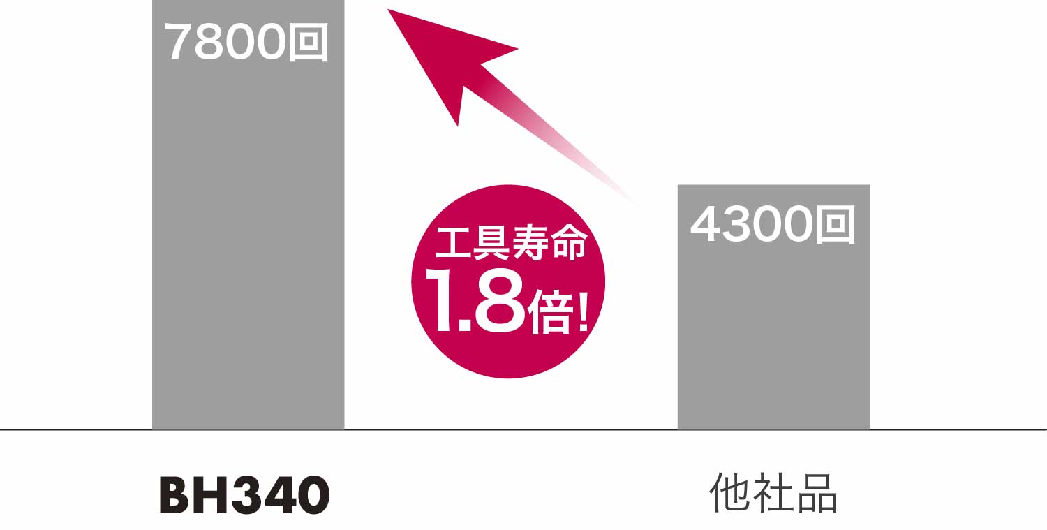 他社CBNは突発欠損が多発していたが、BH340は安定して定数まで加工できるようになった。