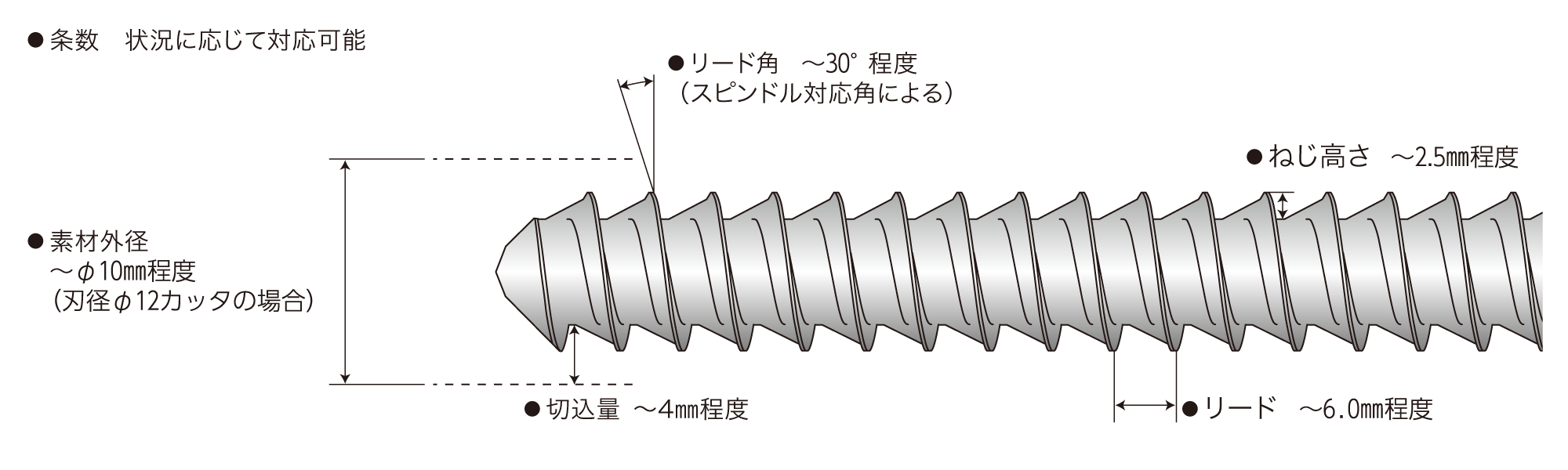 | 素材径: ⌀7 ⌀.276” | ねじ外径: ⌀6 ⌀.236” | ねじ底径: ⌀4 ⌀.157” |