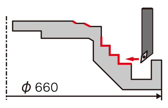 SX7 insert achieved more stable machining due to its excellent notching resistance compared to the competitor’s whisker insert.